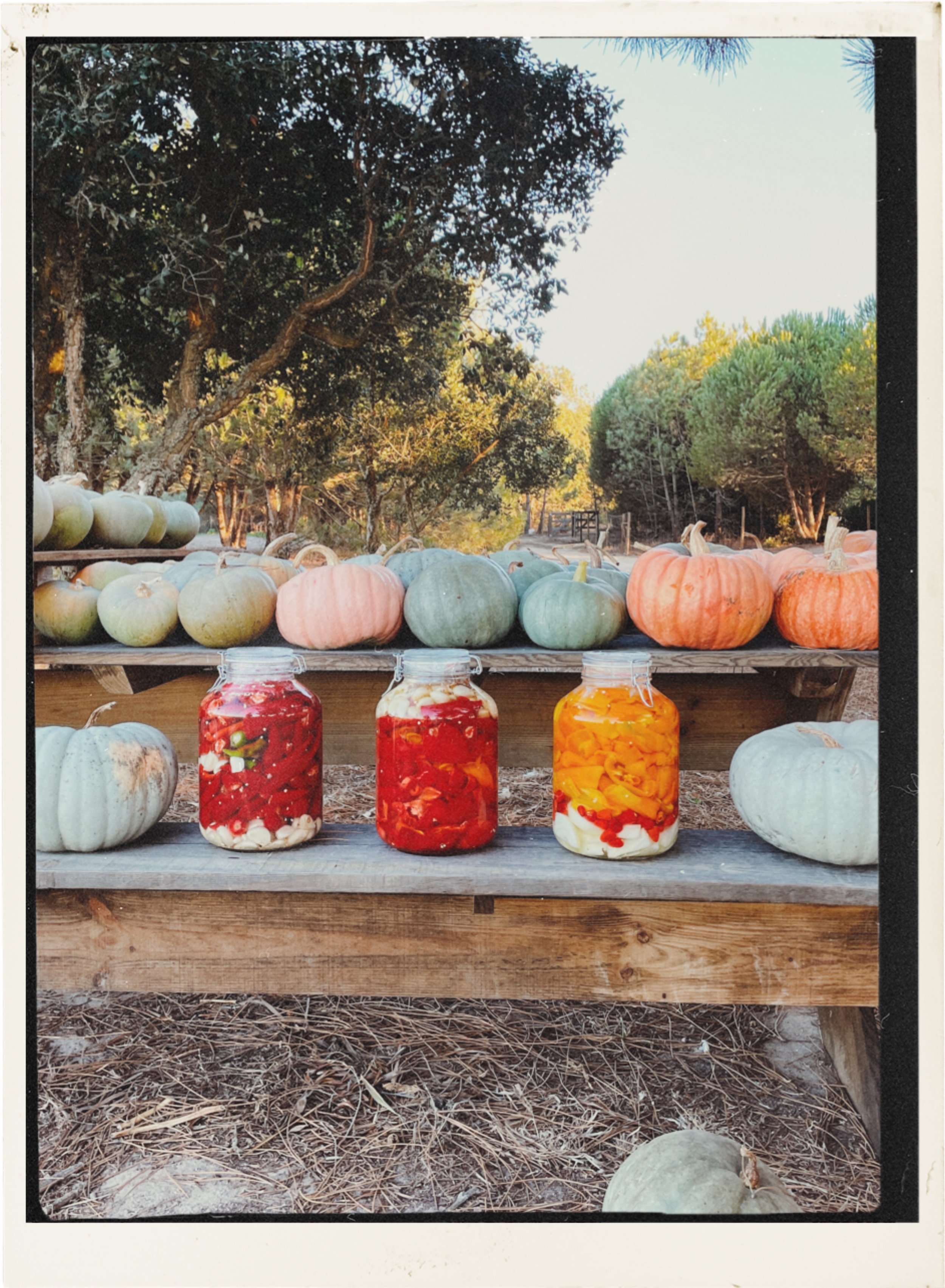 When the fields overflowed with more than could be eaten, we turned to the old ways of keeping: salting, fermenting, and transforming. From their fiery chillies came hot sauces with a sunlit kick; from the earth’s roots, beetroot, radish, and kohlrabi, came bright, tangy pickles. And from their full-grown pumpkins, a sweet young miso was born.